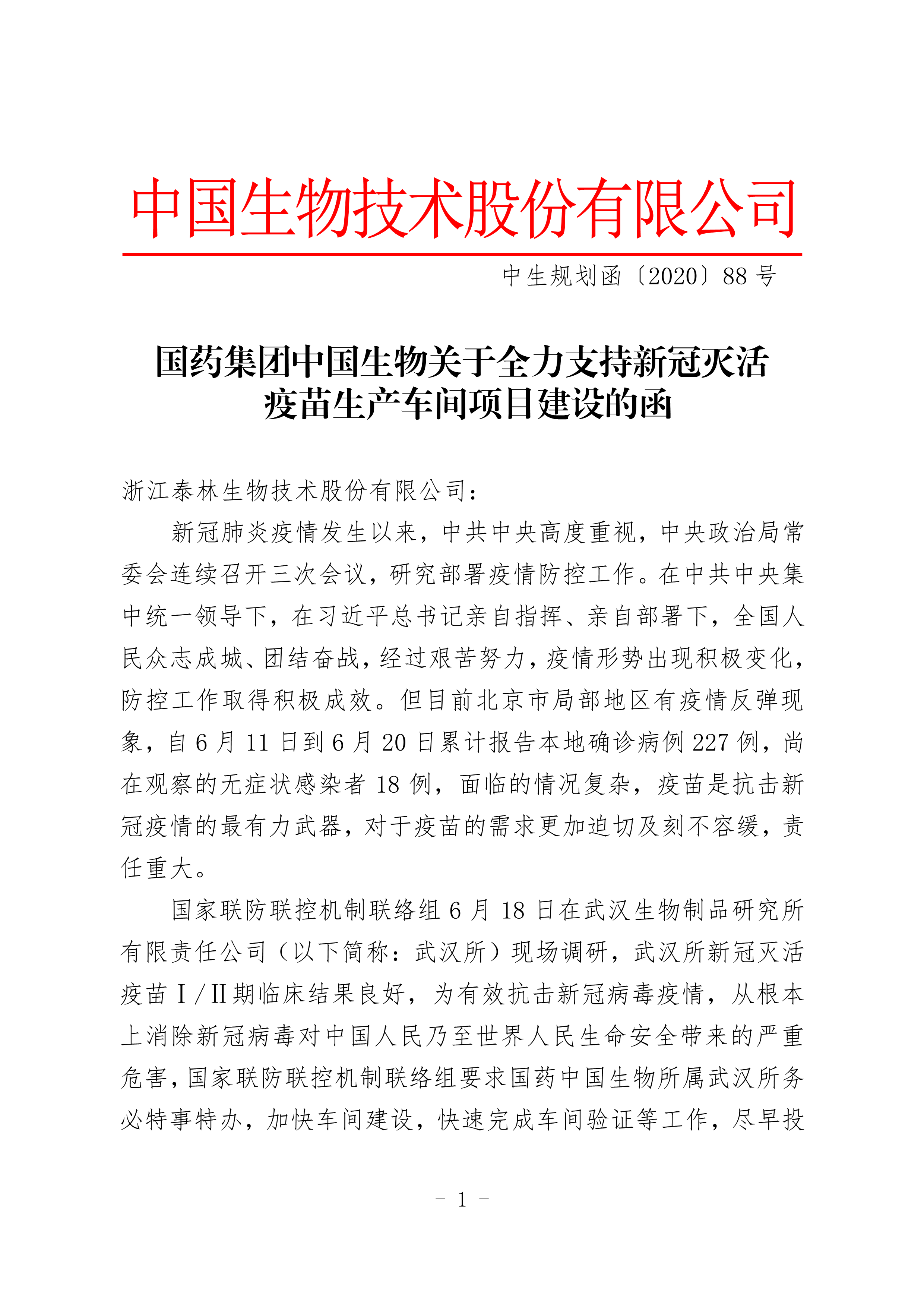 The vaccine is the most powerful weapon against the COVID-19 epidemic, and the need of vaccine for epidemic prevention is urgent. Wuhan Institute of Chinese Institute of Biological Products (owned by SINOPHARM) has started the construction of laboratory and workshop mainly for the development and production of the COVID-19 vaccine. To control the epidemic,the workshop should be built and put into use as soon as possible.